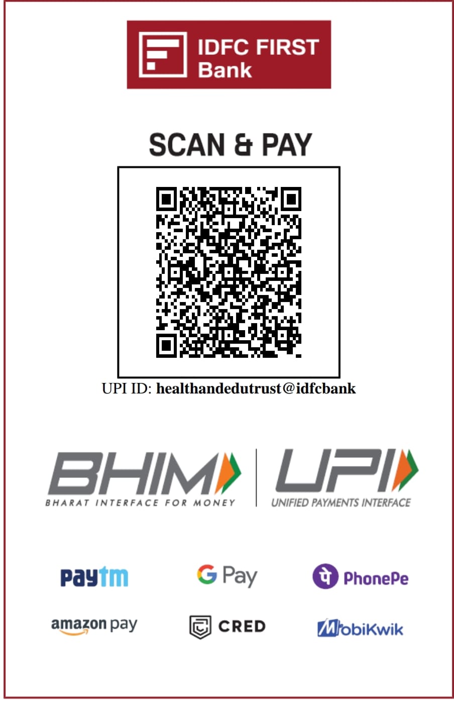 A/c Name : HEALTH AND EDUCATION TRUST